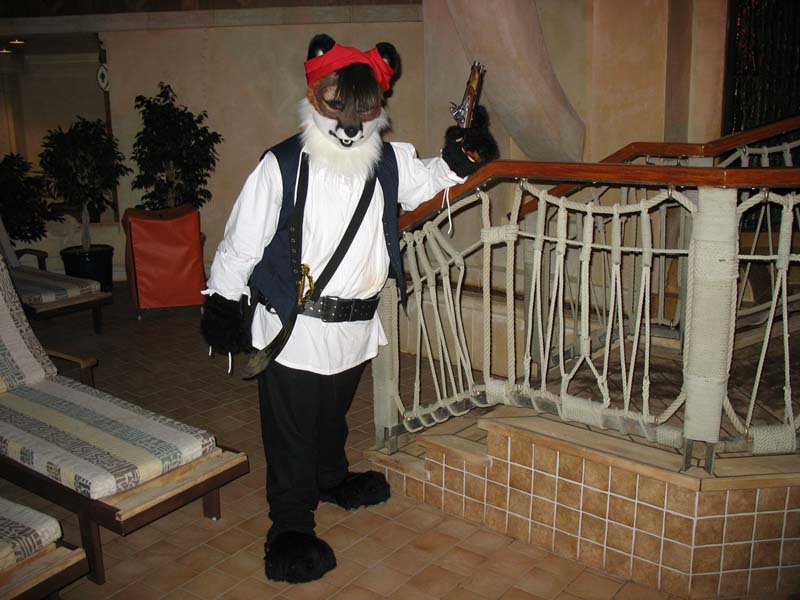 An authentic prop pirate pistol Gibson acquired and managed to bring on board.