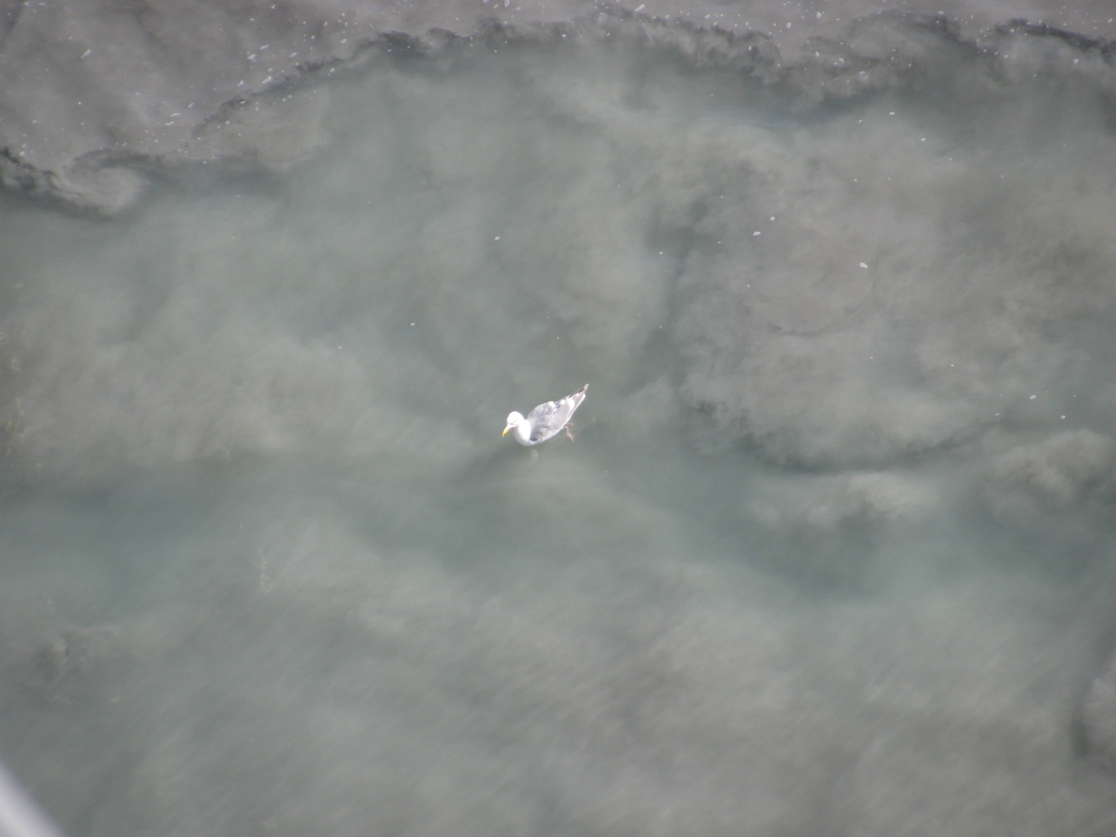 like thunder, falls into the water, breaks up and floats away. If you look closely, just barely to the right of dead center,